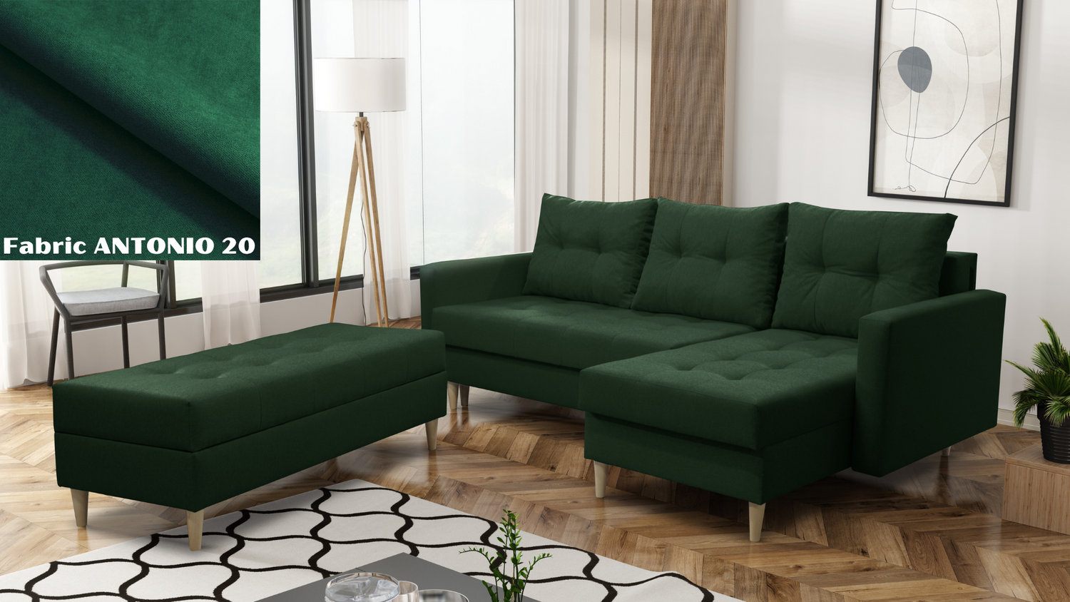 CORNER SOFA BED BRIAN 222CM + STORAGE PUFF / OTTOMAN ANTONIO 20 RIGHT/LEFT CORNER