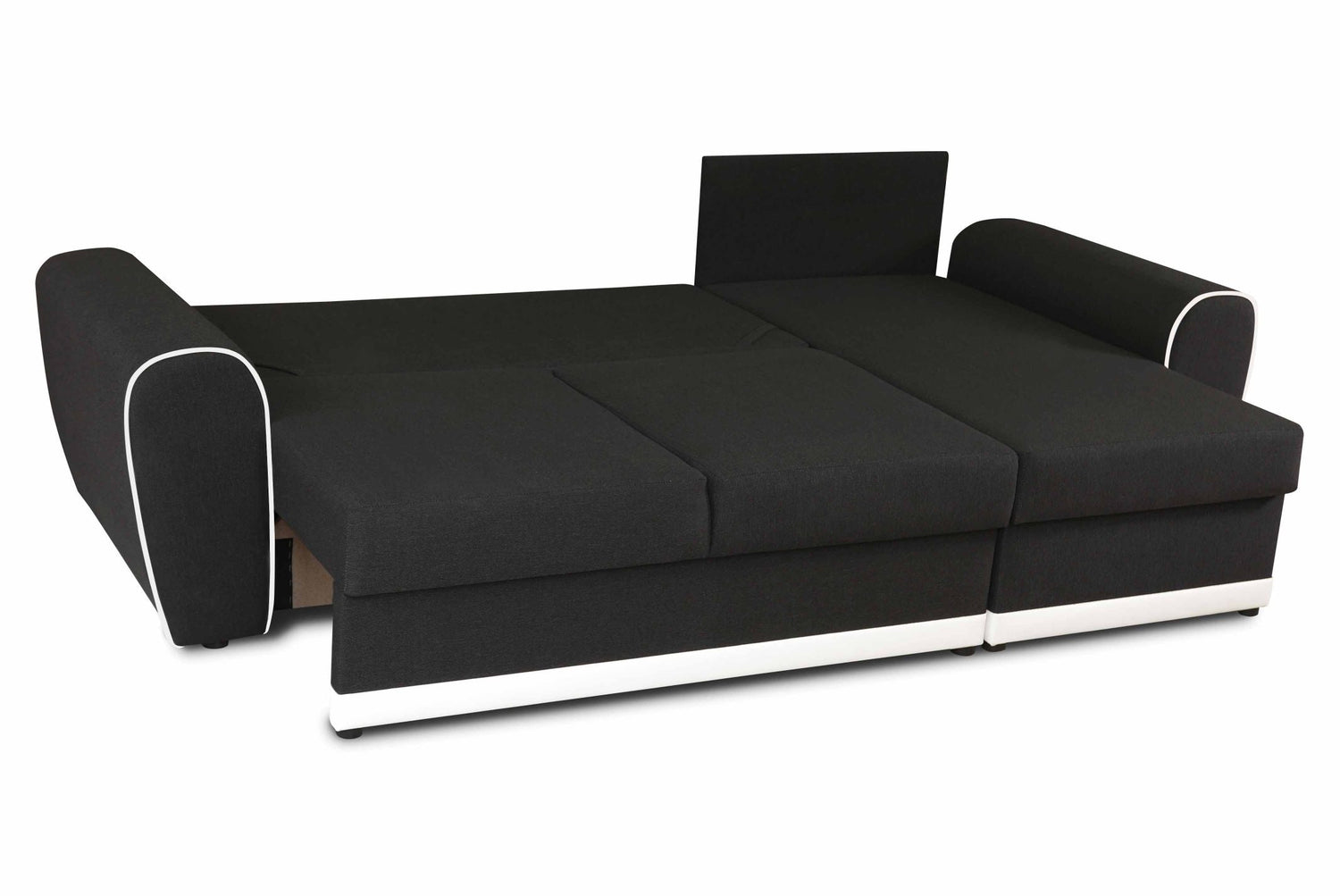 The corner sofa has a very large sleeping area and two practical containers for bedding.